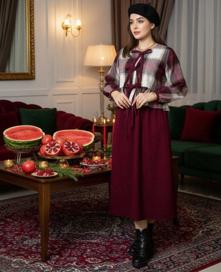 🆔شناسه : #97329👚نام : کت و دامن ثنا💖🧶جنس : کشمیر پشمی وارداتی و کبریتی ریز💖🧵رنگ بندی : شتری-زرشکی-سورمه ای💖👭سایز ها : فری سایز تا46💖💞قد کت حدودا52💞دورسینه 108💞قددامن حدودا85👌رنگ ثابت و باکیفیت