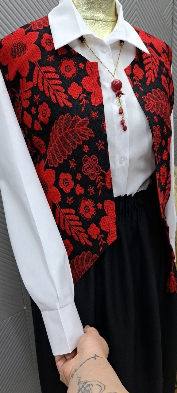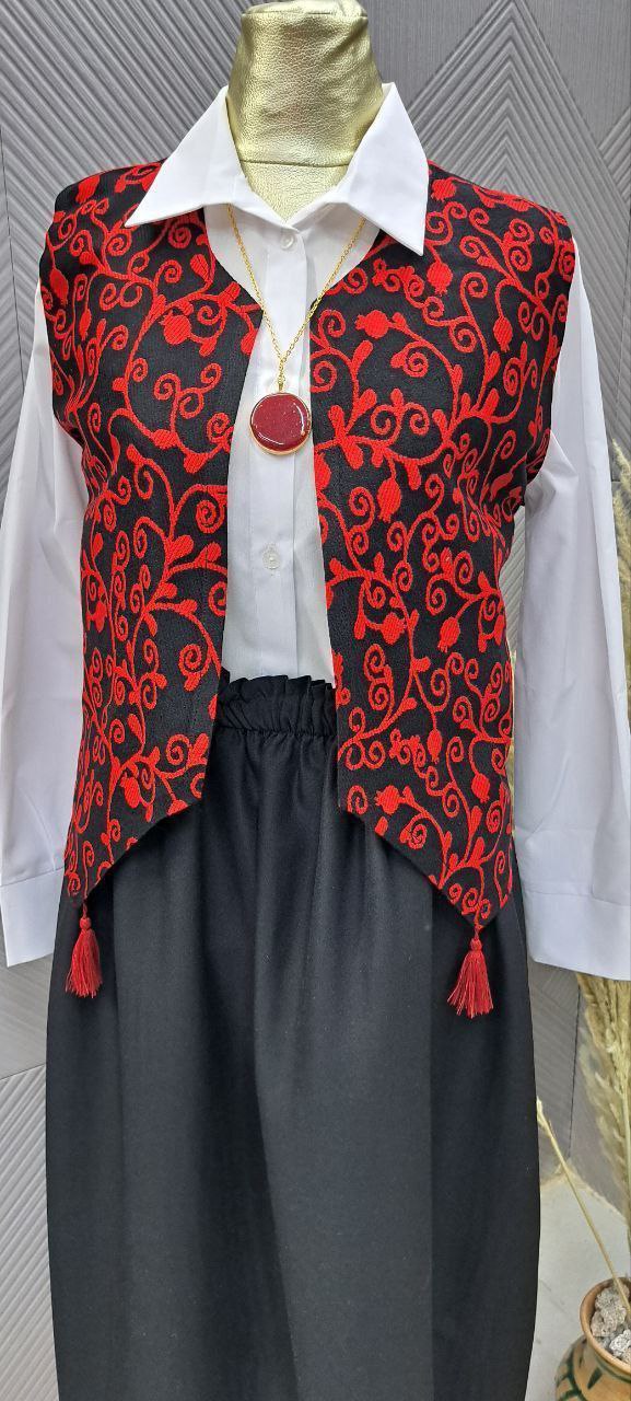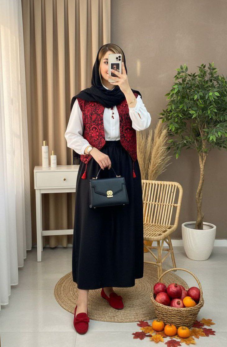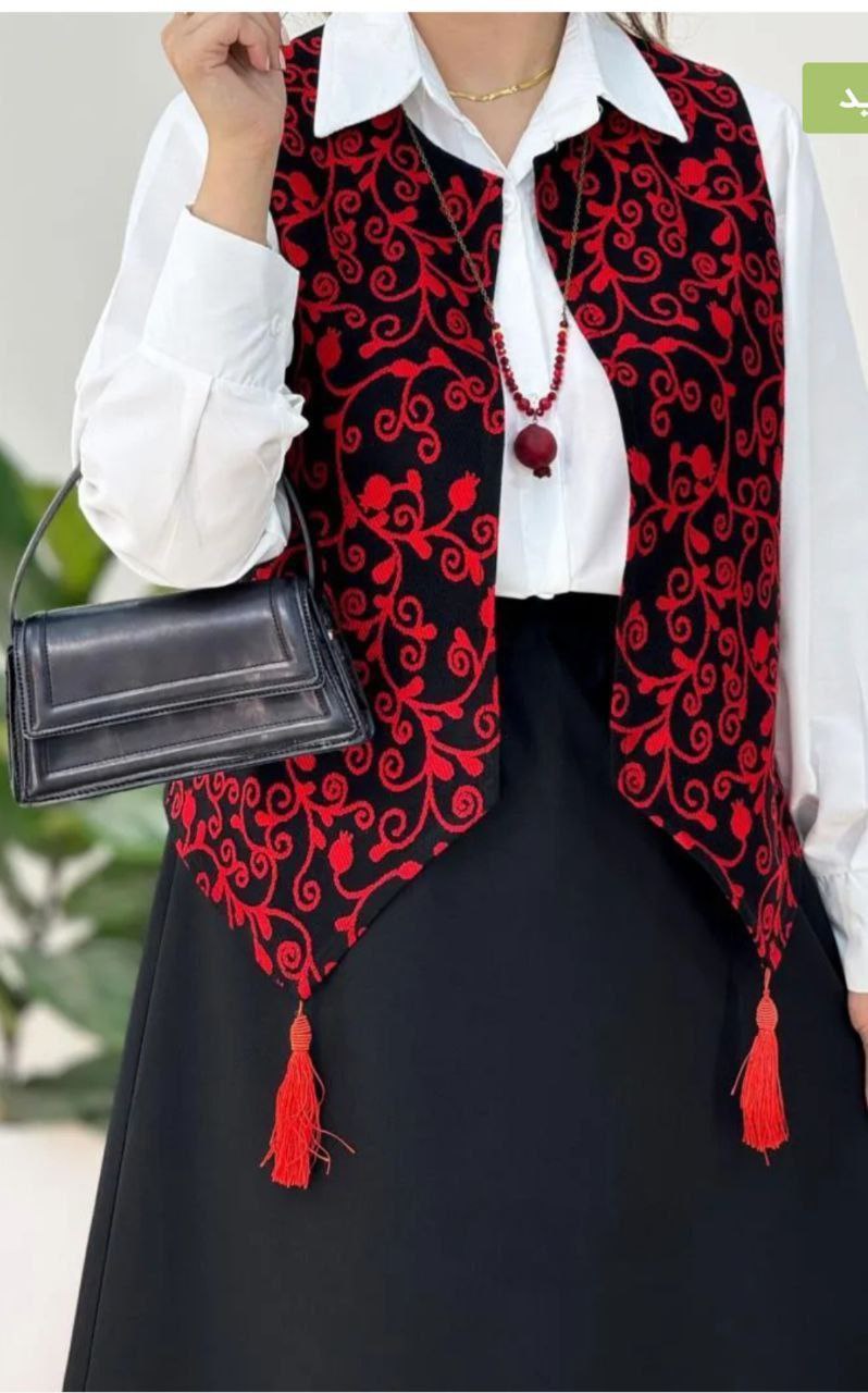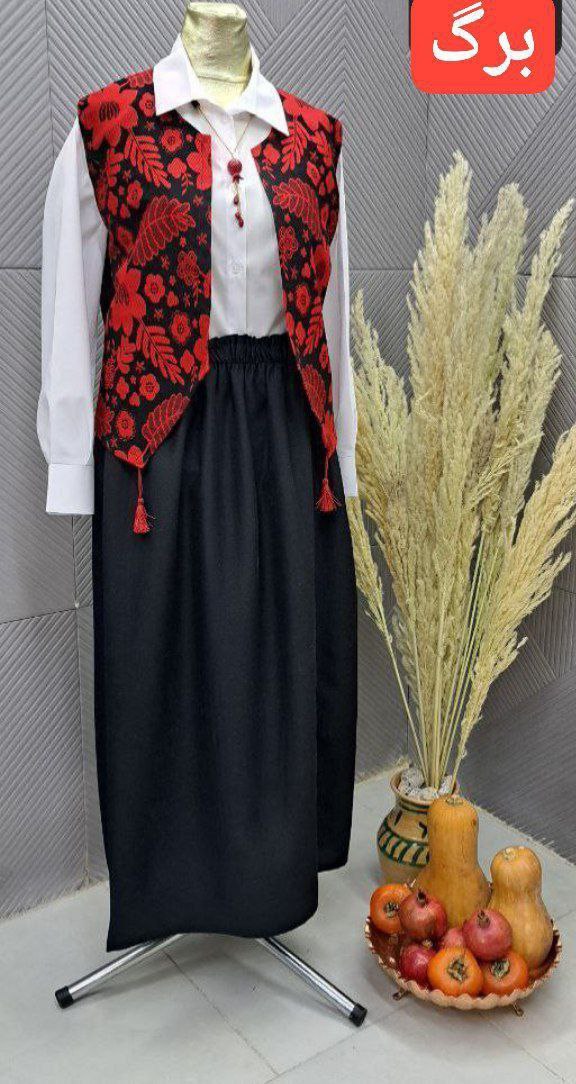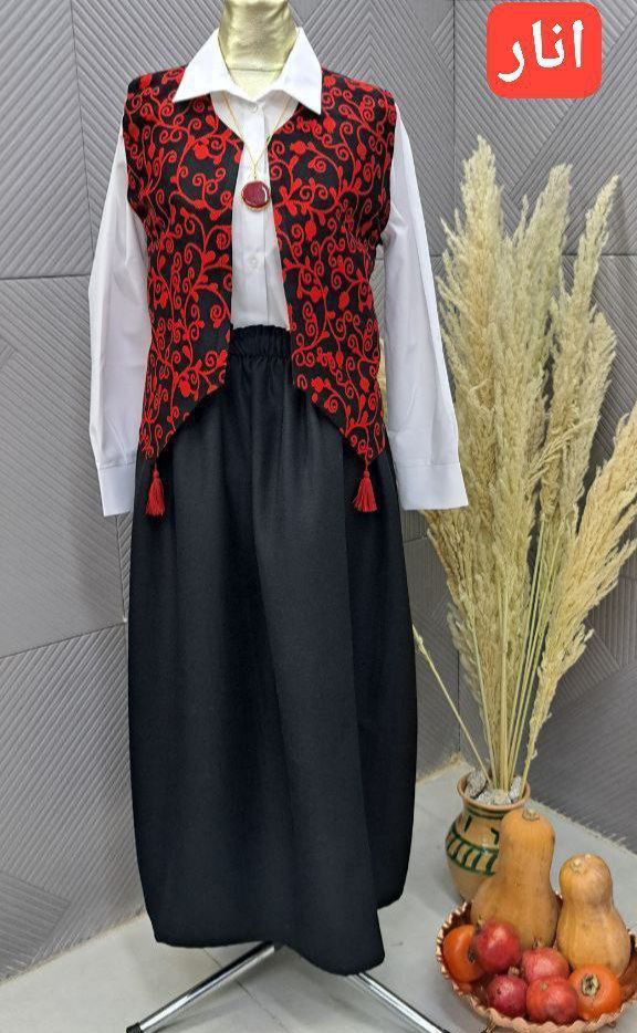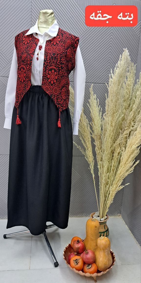 🏷 شناسه: #100344💎 نام: سه تیکه یلدایی📋 توضیحات: 💞جلیقه👇💞دورسینه جلیقه108💞قدجلیقه60💞شومیز👇💞قدشومیز63💞دورسینه شومیز110💞قداستین60💞دکمهکاربردی💞دامن👇💞قد دامن95💞کمر دامن کش کار شده💞سه تیکه شامل:جلیقه+دامن+شومیز💞کیفیت عالی و درجه یک💎 جنس: جلیقه تافته ضخیمشومیز داکرون سانفور شدهدامن کرپ اسکاچی درجه یک💎 رنگ بندی: انار - بته جقه - برگ⚜️ سایز ها: فری