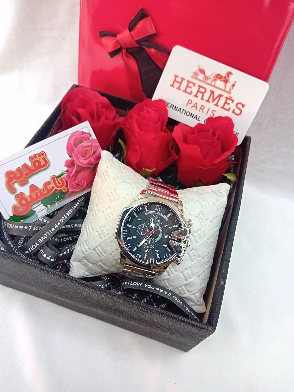 باکس قلبی ارسال میشه 🆔 شناسه : #44241👚نام : باکس هدیه باکس پوشالی همراه با گل رز تعداد گل ۳ عدد 🌹ساعت مردانه دیزل نقره ای صفحه مشکی دارای روز شمار تقویم ساعت طرح سه موتوره ساعت دارای گارانتی ۶ ماه موتورتمام اجزای باکس میتونه به انتخاب شما تغییر کنه 👗بسیار عالي 🎁❤️❤️❤️👗پیشنهادی خاص 🌹😎🎁👗هدیه ای ماندگار 🎁🥰🌷👗. 🧵جنس : بند استیل🖌 رنگ بندی : باکس کامل همراه با ساعت مردانه - ⚜️ سایز ها : set -