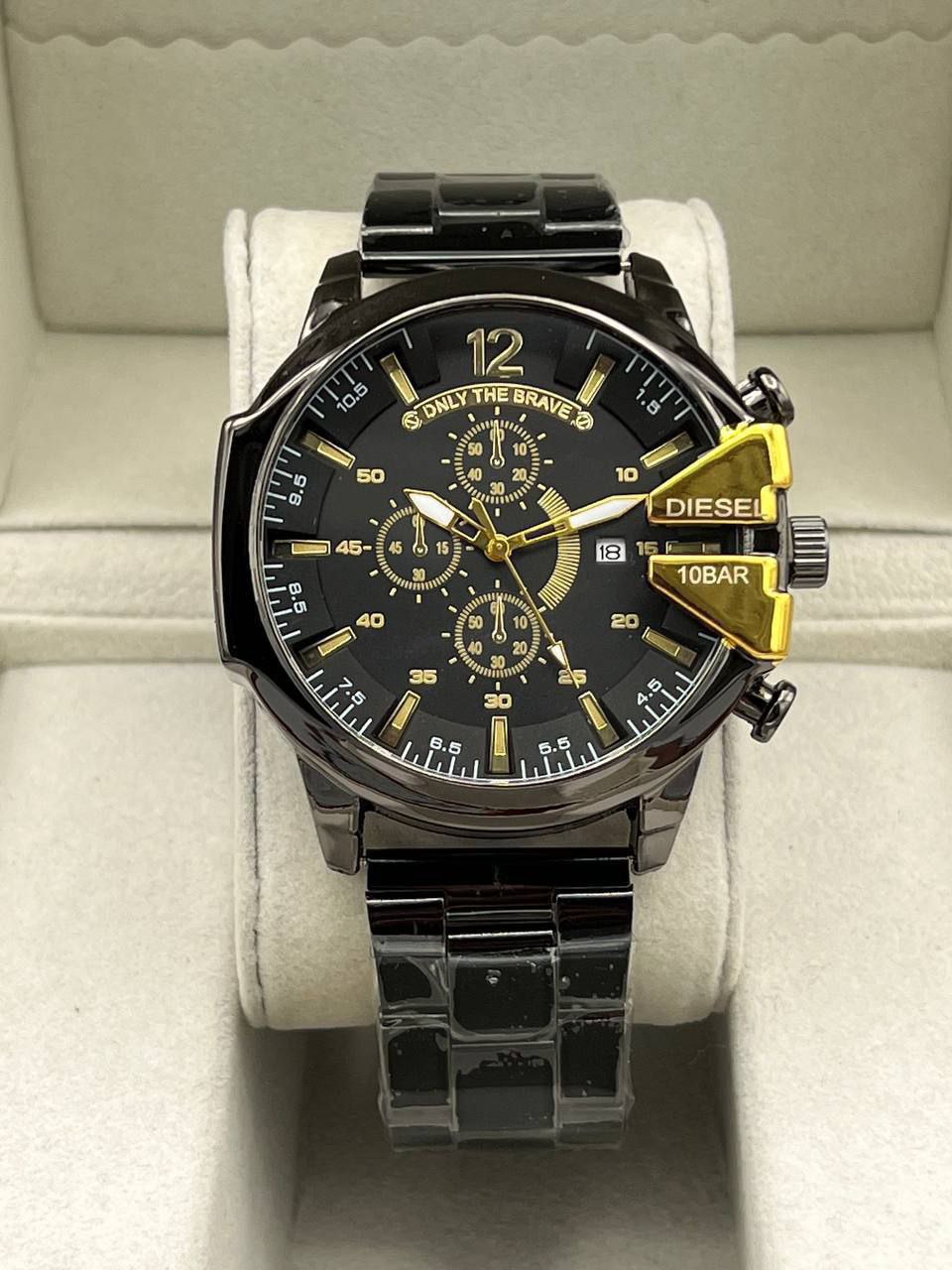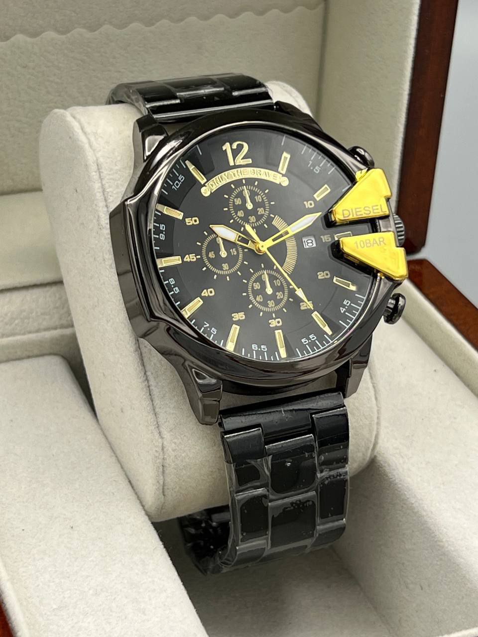 ✨ ساعت دیزل بند استیل مشکی شاخ طلایی