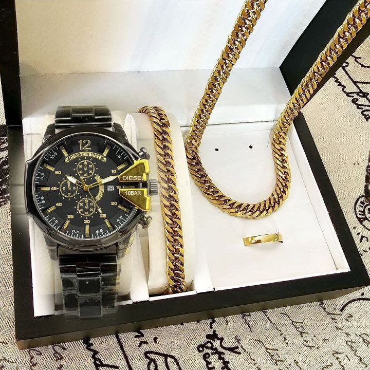 مجموعه کامل ساعت دیزل مردانه + اکسسوری طلایی خاص