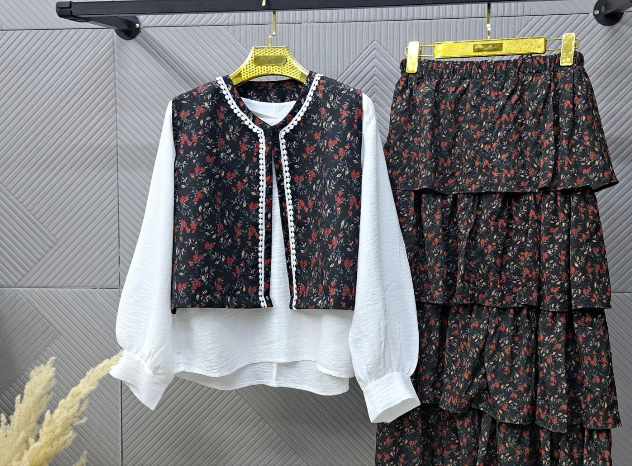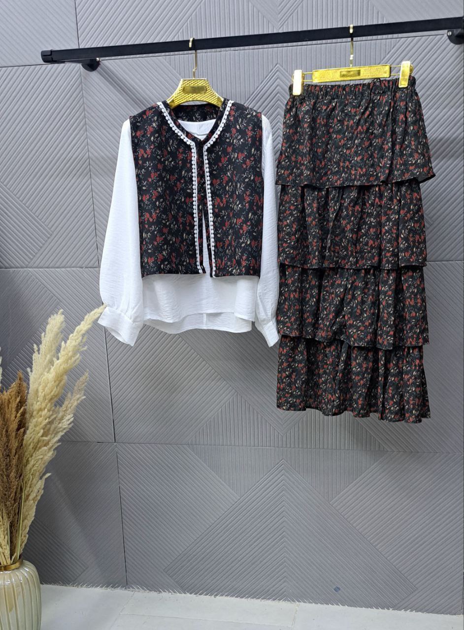 📋 توضیحات: ست شومیز جلیقه و دامن یعنی شیکپوشی با راحتی ترکیب میشه! 💖