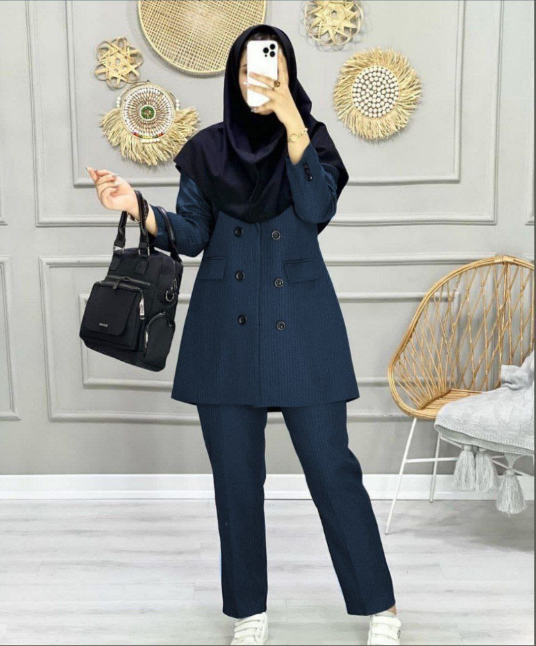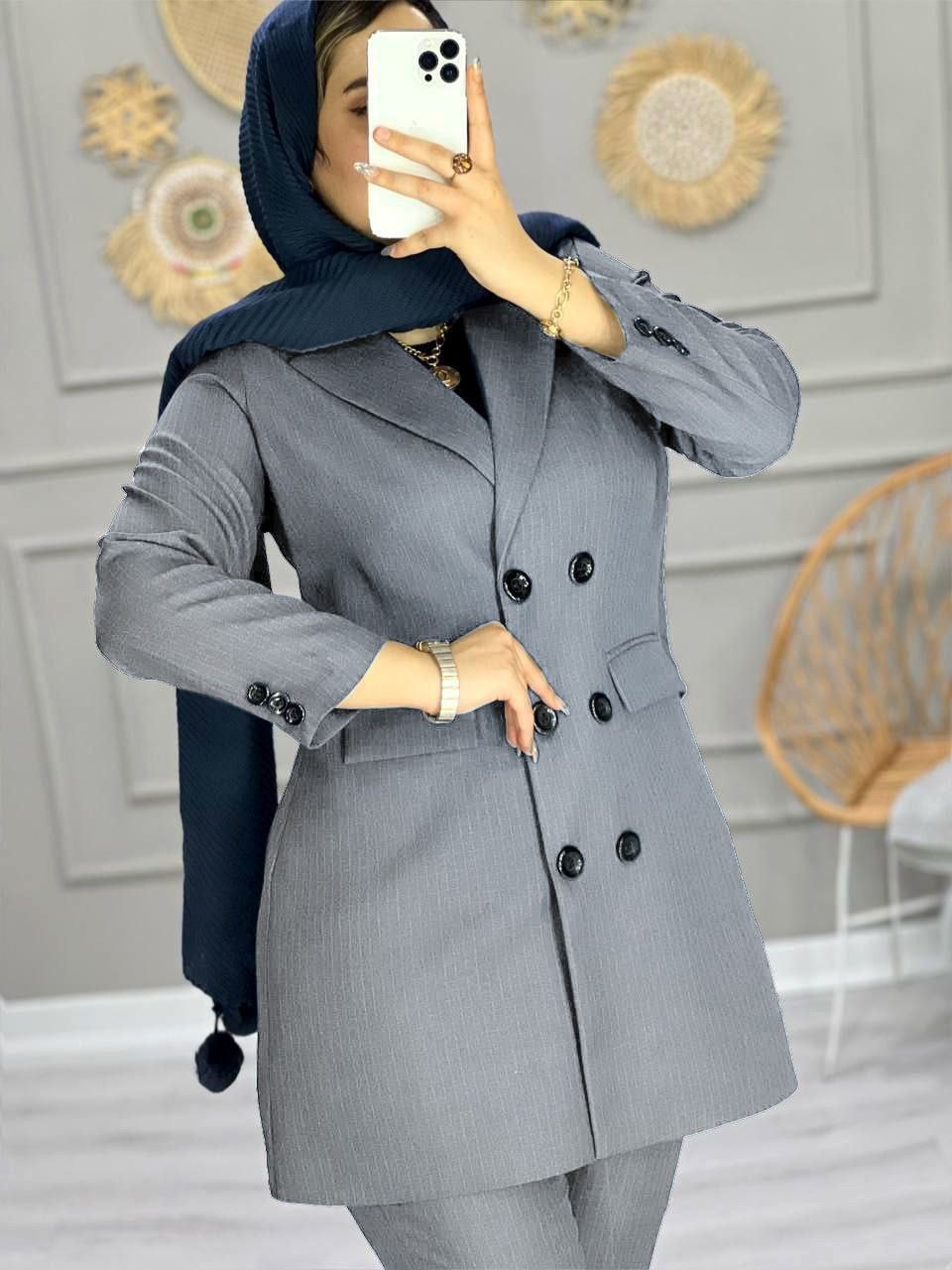 شناسه : #89451نام : مانتو و شلوار اداری پریاجنس : پرشیا دیپلمات با کیفیترنگ بندی : سرمه ای, طوسی, مشکی, نوک مدادیسایز ها : سایز ۱ مناسب ۳۸ و ۴۰, سایز ۲ مناسب ۴۲ و ۴۴, سایز ۳ مناسب ۴۶ و ۴۸, سایز ۴ مناسب ۵۰ و ۵۲جیب کاربردی /کمر شلوار زیپ و دکمه دارد پشت شلوار کش کار شدهدورسینه سایز ۱تا۴:98cm/106cm/114/120cmدوربازو سایز ۱تا۴:40cm/43cm/46cm/49cmدور باسن شلوار سایز ۱تا۴:104cm/112cm/120cm/128cmدور ران سایز ۱تا ۴:64cm/68cm/72cm/76cmقد استین 60cmقد مانتو 85cmقد شلوار 100cmتمامی اندازه ها حدودی میباشد