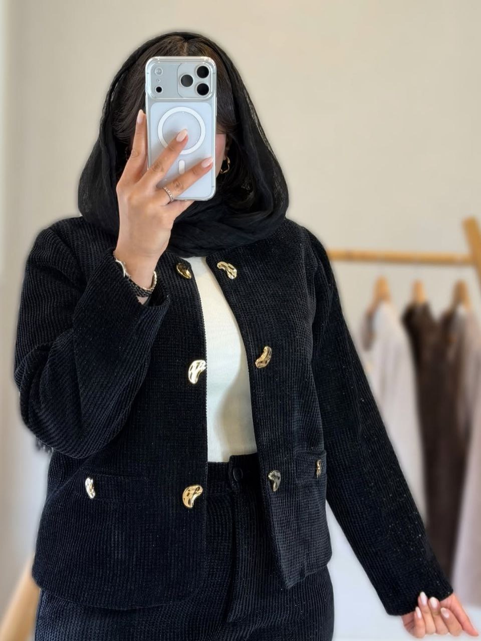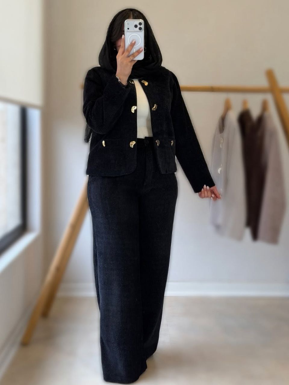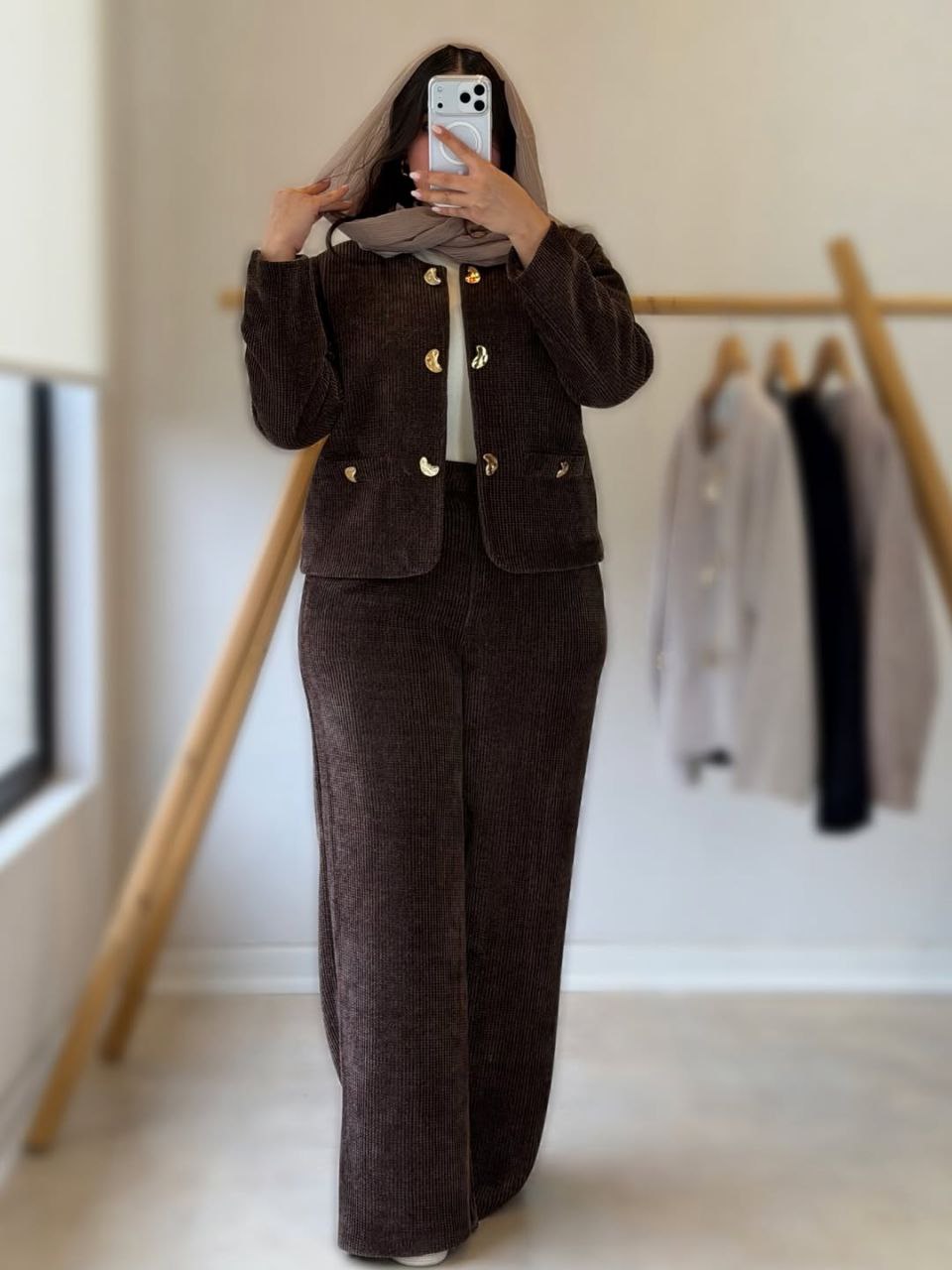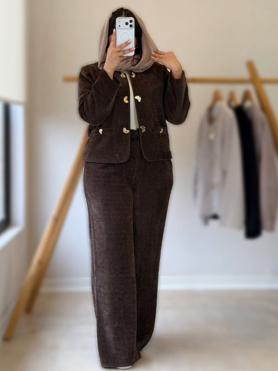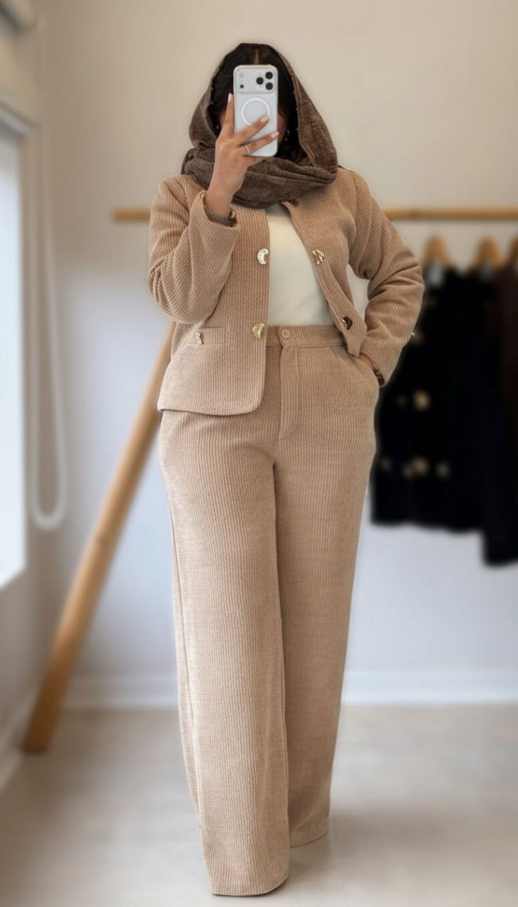 👚نام : ست کت و شلوار شایلین💖🧶جنس : کبریتی ریز💖🧵رنگ بندی : قهوای, کرمی, مشکی💖👭سایز ها : فری سایز تا 46💖⚡️قد کت56⚡️دورسینه106👌جلو کت کاملا لایه کوبی شده⚡️قدآستین 58⚡️قدشلوارحدودا110⚡️دورران70⚡️پشت شلوار کش ⚡️دکمه و زیپ ⚡️جیبدار✅ارسال15دی ماه
