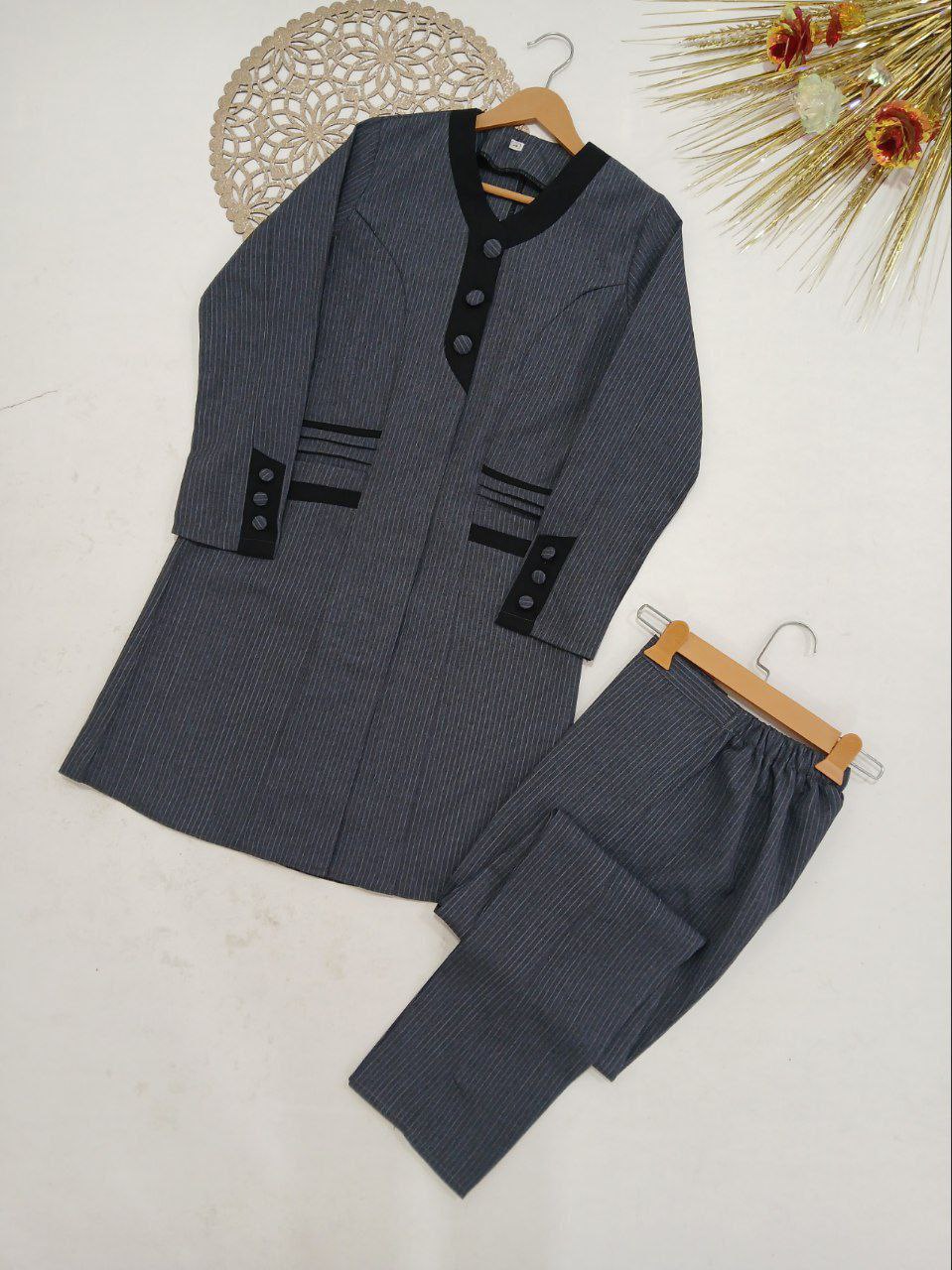 شناسه : #89311نام : مانتو و شلوار اداری حوراجنس : پرشیا دیپلمات با کیفیترنگ بندی : سرمه ای, طوسی, مشکی, نوک مدادیسایز ها : سایز ۱ مناسب ۳۸ و ۴۰, سایز ۲ مناسب ۴۲ و ۴۴, سایز ۳ مناسب ۴۶ و ۴۸, سایز ۴ مناسب ۵۰ و ۵۲جیب کاربردی /کمر شلوار زیپ و دکمه دارد پشت شلوار کش کار شدهپشت مانتو چاک دارددورسینه سایز ۱تا۴:98cm/106cm/114/120cmدوربازو سایز ۱تا۴:40cm/43cm/46cm/49cmدور باسن شلوار سایز ۱تا۴:104cm/112cm/120cm/128cmدور ران سایز ۱تا ۴:64cm/68cm/72cm/76cmقد استین 60cmقد مانتو 95cmقد شلوار 100cmتمامی اندازه ها حدودی میباشد