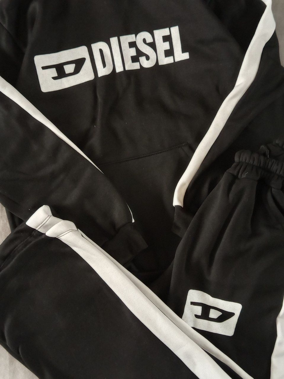 #️⃣شناسه کاربری : #6079🖋نام : ست هودی و شلوار طرح DIESEL 💣💣💣👚جنس : دورس دو نخ داخل کرکی ، فوق العاده گرم و نرم با تنخور فوق العاده شیک و جذاااااب 👍با دو جیب کاربردی و کشسانی بالا ❌🌈رنگ بندی : مشکی , 📏سایزها : XL , 2XL , سایز XLدورسینه ۱۱۰-۱۰۰ قد هودی ۷۲ سانت قدشلوار۱۰۲-۱۰۰/دورکمر۱۱۰-۶۰/دورباسن ۱۲۰-۱۰۰سایز 2XLدورسینه ۱۱۵-۱۰۵قد هودی ۷۴ سانت قدشلوار۱۰۴-۱۰۲/دورکمر۱۲۰-۶۰/دورباسن ۱۳۰-۱۱۰
