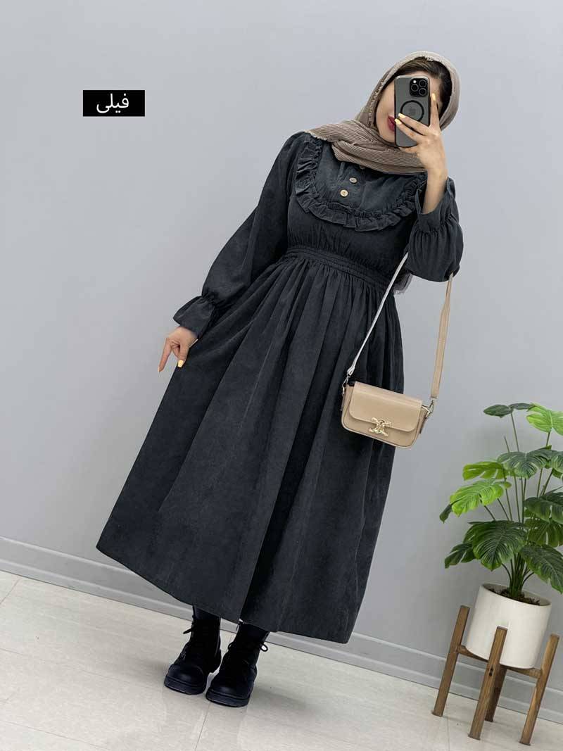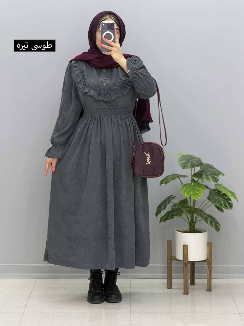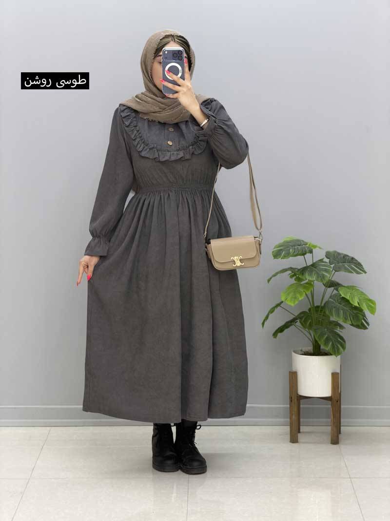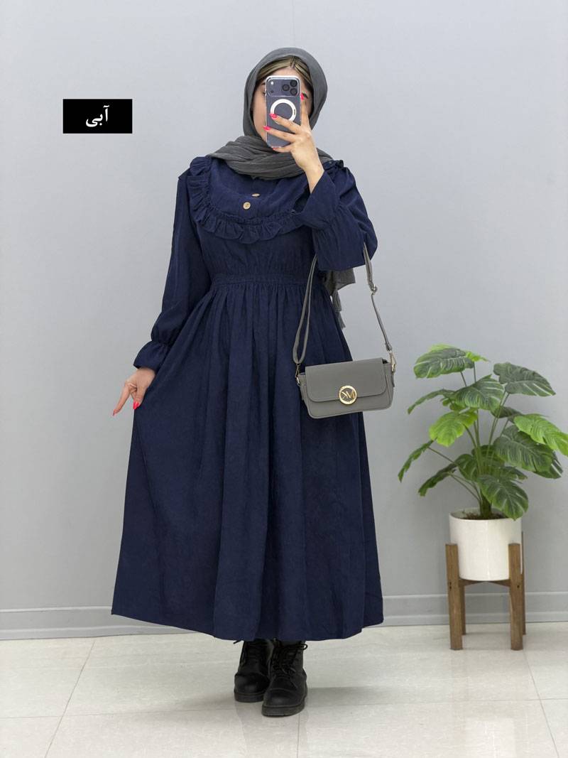 مانتو پیراهنی بلند مینا👚 جنس مخمل کبریتی فری سایز 🪡مناسب سایز 38 الی 44رنگبندی🌈 آبی خاکی زرشکی سرمه طوسی تیره فیلی مشکی قد لباس ۱۲۷ قد آستین ۵۷دورباسن ۱۴۰دورسینع در حالت عادی 100کشسانی 110