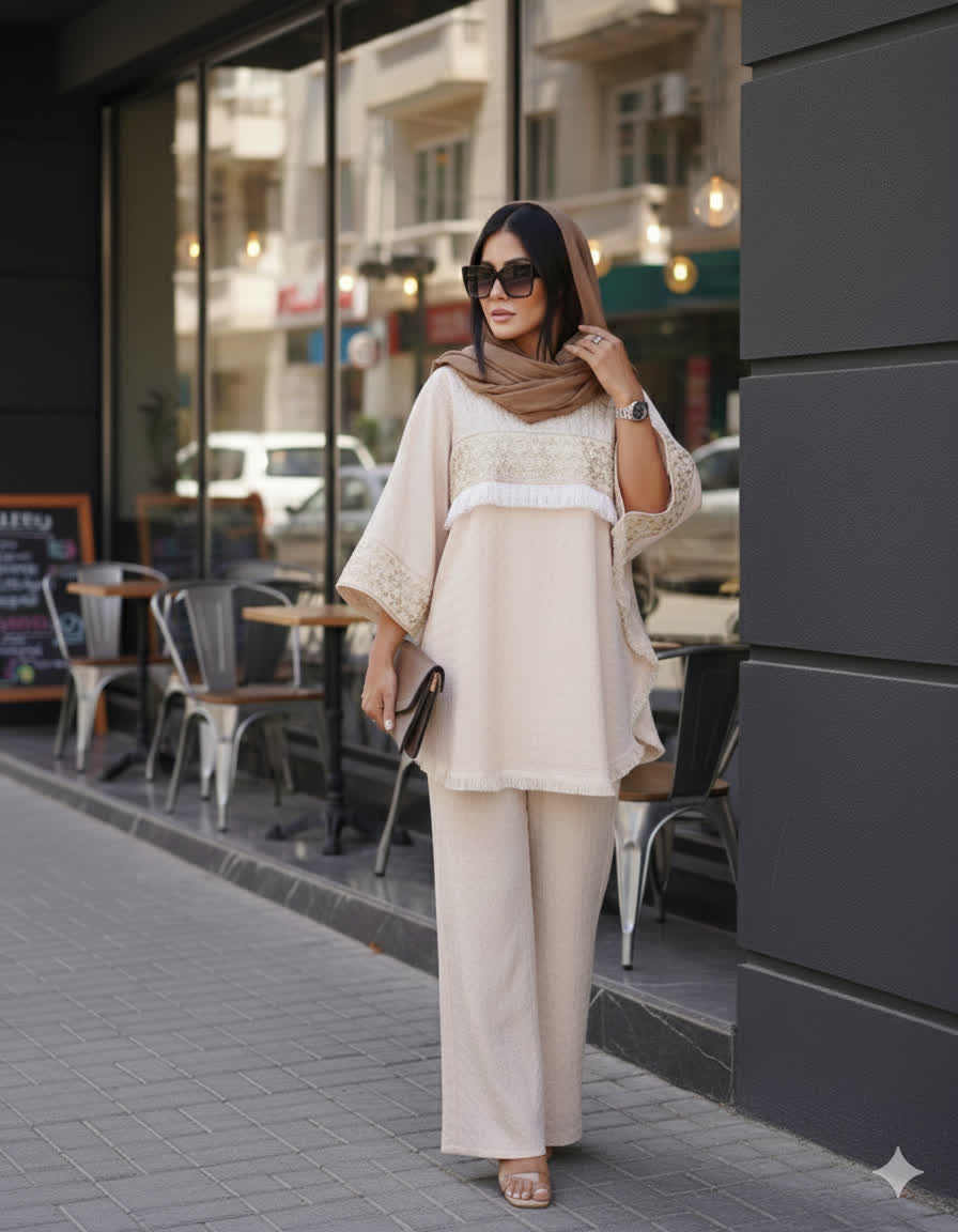 .🌺 کالکشن اختصاصی نوروز ۱۴۰۵ 🌺✨ درخششِ بیتکرار؛ ستارهی جمعِ نوروزیات باش ✨🌟 💎 کد ۰۲۵۸: ست پانچ و شلوار با خرجکار هندی💎 فراتر از یک انتخاب، یک امضا برای استایل شما 💎«هنری که به قامت شما دوخته شده است» 🧵 جنس: کریشه مراکشی درجه یک؛ بدون چروک شدن و آبرفت با ایستایی عالی🔶 جزییات: تلفیق سنت و مدرنیته؛ دارای خرجکار سوزندوزی و پولکدوزی هندی و گلدوزی(تنخور عالی 🅰️ - تضمین کیفیت دوخت مزونی 🅰️)🎨 رنگبندی: مشکی - نسکافهای - کرم✅ سایزبندی: * پانچ: فری سایز (مناسب ۴۰ تا ۵۴)• شلوار: کمر کش فاق بلند (در دو سایز)راهنمای سایز شلوار:🔺سایز یک: مناسب ۴۰ تا ۴۶ / دور باسن تا ۱۱۲ (با کشسانی بالاتر از ۱۱۲)🔺سایز دو: مناسب ۴۸ تا ۵۴ / دور باسن ۱۲۸ (با کشسانی بالاتر از ۱۲۸)✅ قد کار: ۷۵✅ قد شلوار: ۱۰۵