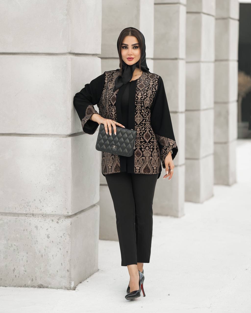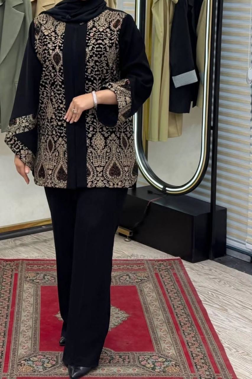 جنس: کرپ مروی جت اندونزی به همراه مخمل سوزن دوزی